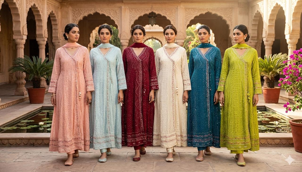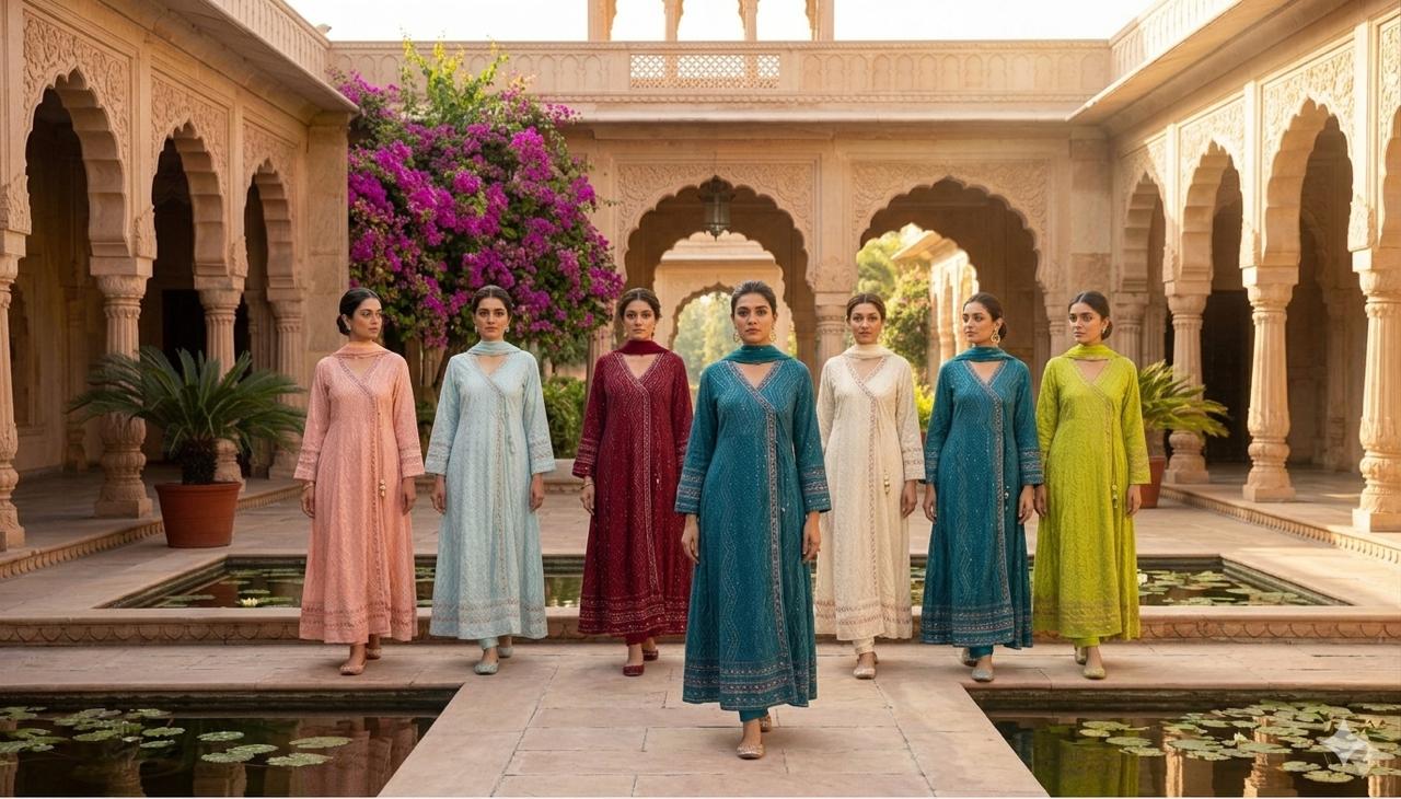 Silk Fabric Handwork Kurta Set with Chiffon Dupatta & Silk Palazzo | Elegant Ethnic Wear for Women